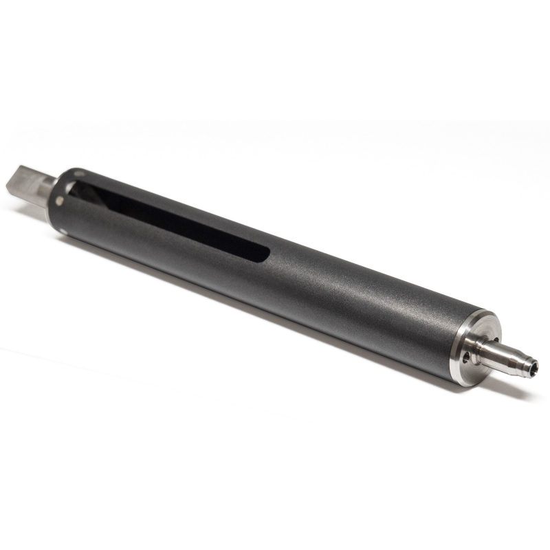 Black steel cylinder with teflon surface ensures smooth piston travel and minimal friction.