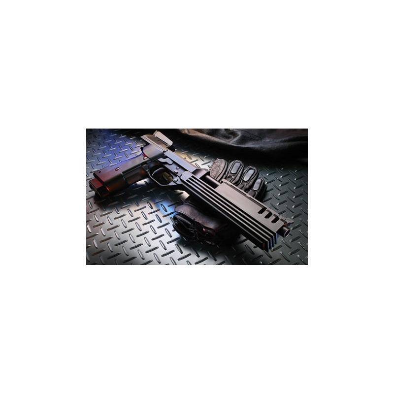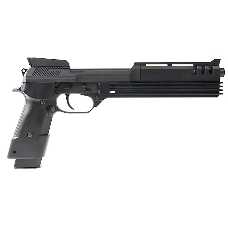 Looking for an iconic pistol from the Robocop movie that can handle serious airsoft action while offering authentic collector markings? Want a high-capacity gas magazine that won’t need refilling every few minutes? Need a burst-fire pistol to deal with cheaters? Then the KSC M93R Auto-9 C is your weapon of choice. It combines movie-accurate details with practical features like an adjustable hop-up, metal control parts, and a robust gas magazine with 38 BBs capacity. Despite its massive size, it is surprisingly lightweight thanks to reinforced polymer construction. The long inner barrel and hop-up adjustment make it suitable for accurate shots at longer distances. The pistol is optimized for airsoft gases such as HFC134a or Light Gas (Green Gas can be used but may cause faster wear). The result is the perfect handheld cannon for those who want to bring justice and order both on and off the airsoft field.