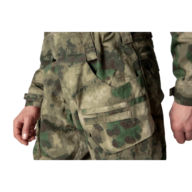 G4 Tactical Combat Shirt by SATAC in A-TACS FG (replica). Durable ripstop fabric resists tearing. Perfect UBACS shirt for plate carrier use. Elbow protection, YKK zippered pockets (G4) and adjustable sleeve cuffs. VELCRO panels for patches or flags. High collar prevents chafing from sling.