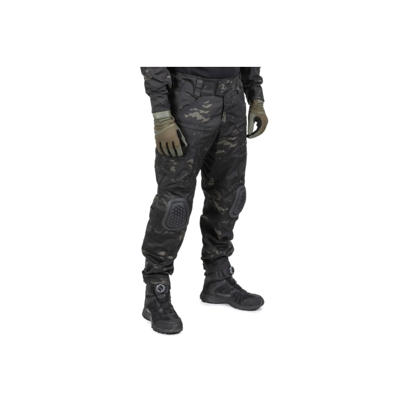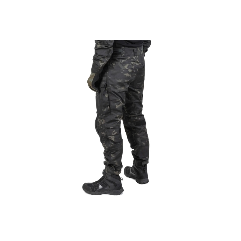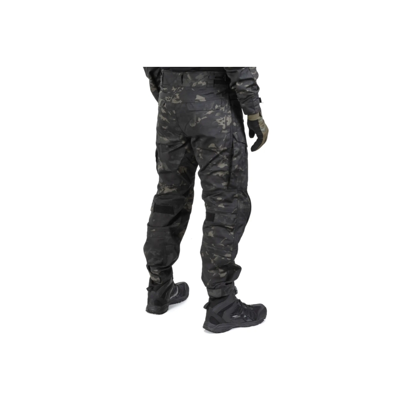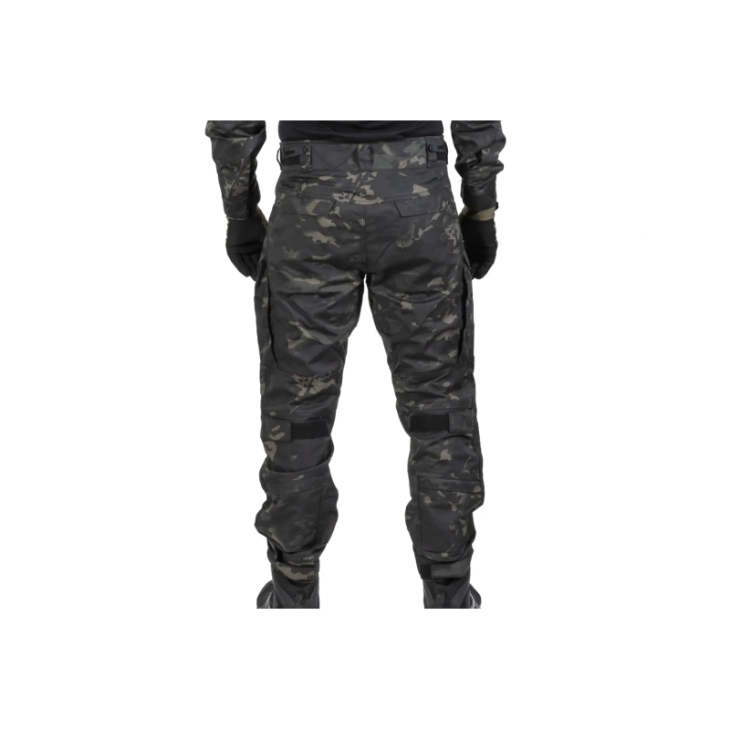G3 Tactical Combat Shirt by SATAC in Multicam Black (replica). Durable material with ripstop reinforcement. Perfect UBACS design for plate carrier use. Elbow protection, hook-and-loop pockets (G3) and adjustable sleeve cuffs. VELCRO panels for patches or flags. High collar to prevent sling chafing.