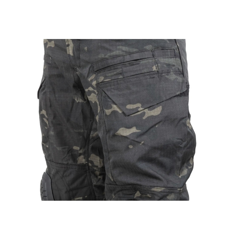 The COMBAT G4 tactical pants from SATAC are designed for maximum comfort and durability on the airsoft field, at the range, or for everyday wear. They’re made from a blend of polyester and cotton with a Rip-Stop weave, which helps prevent the spread of damage from rips or tears. The G4 version is optimized for increased toughness (without elastic panels like in the G3 version, but with a looser cut) and features even more pockets. You get a total of 13 functional pockets – 2 classic hand pockets, 2 rear pockets, 2 thigh pockets, 1 open utility pocket, 2 mag thigh pockets, 2 cargo pockets, and 2 smaller calf pockets. The waistband has a hook-and-loop adjustment for a precise fit without the need for a belt. Both the leg cuffs and knees can be adjusted via internal drawcords. A set of G4 knee pads with an anti-slip surface is included for better protection when kneeling or crawling.