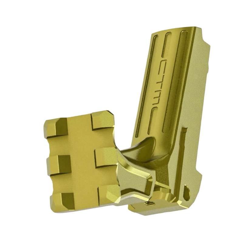 CTM TAC CNC UnderMount Hi-Capa stock adapter in gold finish is designed for mounting a RIS / M1913 stock in a lowered position on TM Hi-Capa airsoft pistols. CNC-machined aluminum construction provides high durability, improved shooting stability and more natural aiming. Ideal upgrade for SpeedSoft and CQB.