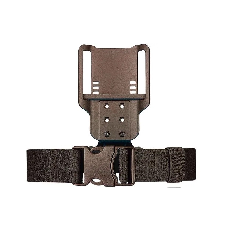 The platform is compatible with all Amomax pistol holsters and magazine pouches. Thanks to the adjustable internal slider, the width can be customized to fit belts between 40 mm and 60 mm (for 60 mm belts, the slider must be completely removed). It also includes a non-slip thigh strap, which secures the entire platform and holster to your body, ensuring a stable fit even when running or engaging in dynamic movement. The robust construction made from durable high-tech polymer guarantees maximum longevity.