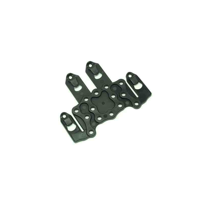 The universal MOLLE platform by FMA is designed for attaching CQC holsters, knife sheaths, magazine pouches, or flashlight holders. Its compatibility with any MOLLE system provides versatile adjustment options, making it suitable for both right-handed and left-handed users. The platform works with holsters that use a 3-screw mount, such as the SERPA models by Blackhawk. Made from durable nylon, this platform is both lightweight and robust.