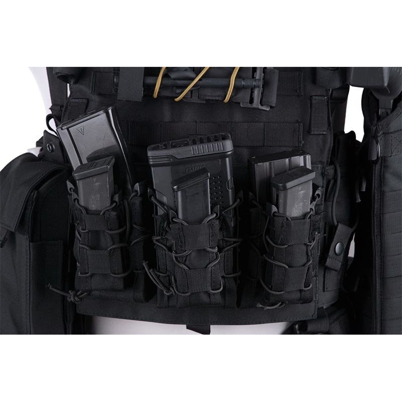 Attachable to equipment thanks to MOLLE system. The pouch does not have a traditional flap, which allows for a rapid access to the magazine itself. The magazine itself is secured in place with a rubber band as well as a special polymer safeguard, so the User does not have to worry about it accidentally falling out.