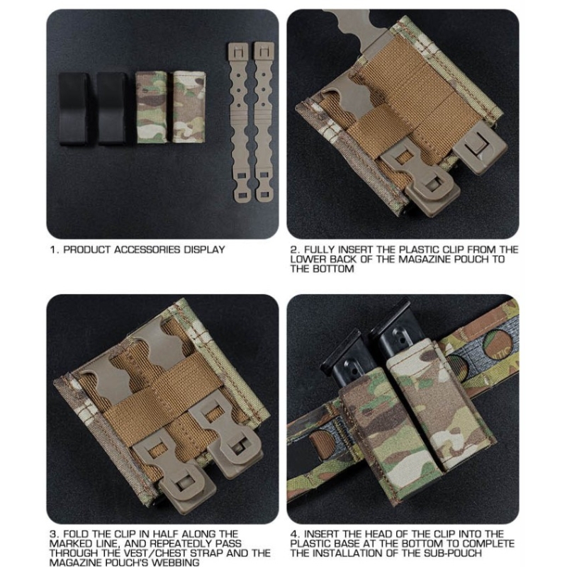 WoSporT FAST MOLLE open-top pouch for 2 pistol magazines in black is a compact open-top pouch with firm retention without the need for a bungee cord. The lightweight construction, plastic inserts and removable MOLLE clip make it an ideal pouch for fast reloads. Designed for 2 double-stack pistol magazines such as Glock (G17, G19), Hi-Capa, CZ 75, CZ Shadow and their airsoft versions.