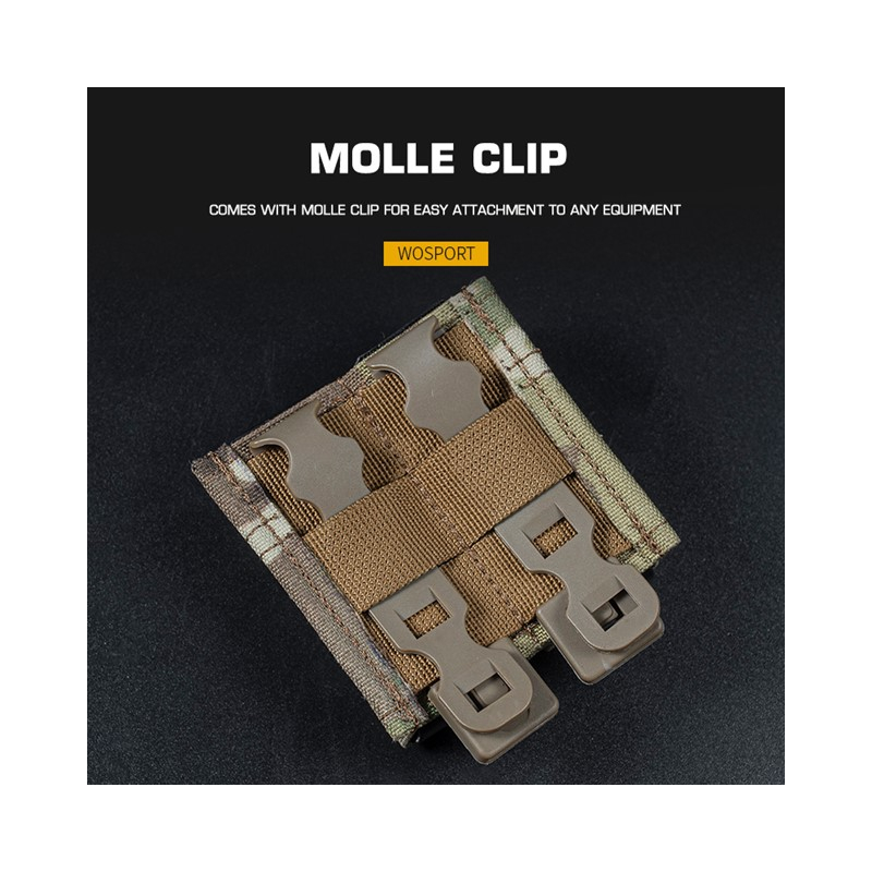 WoSporT FAST MOLLE open-top pouch for 2 pistol magazines in Coyote is a compact open-top pouch with firm retention without the need for a bungee cord. The lightweight construction, plastic inserts and removable MOLLE clip make it an ideal pouch for fast reloads. Designed for 2 double-stack pistol magazines such as Glock (G17, G19), Hi-Capa, CZ 75, CZ Shadow and their airsoft versions.
