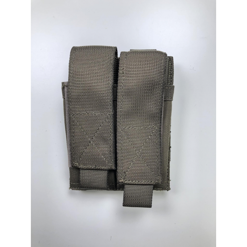 FastMag pouch for pistol magazines in Dark Earth. Two pieces in the package. For double-stack magazines of pistols like Glock, Beretta, CZ, Hi-Capa, SIG, Canik etc. (including GBB and CO2 airsoft variants). Allows for quick reloading. Secure retention of magazines. Attaches to MOLLE webbing or belt using elastic straps.