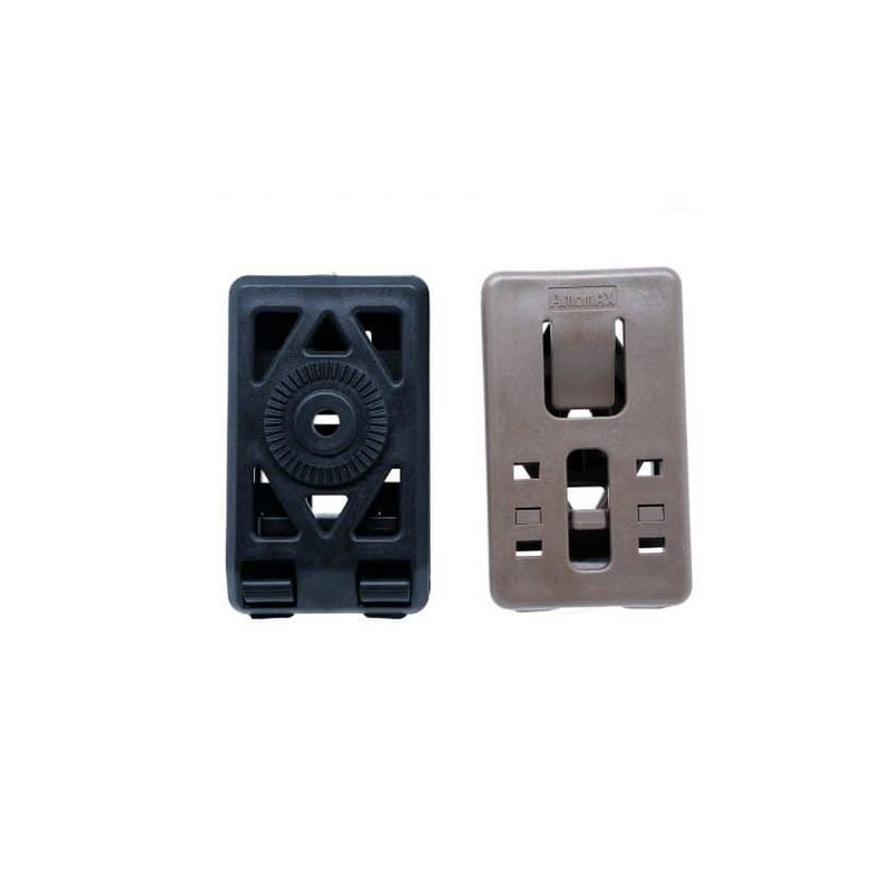 For pistol holsters like SSP1 and SSP18 with 1 mounting screw and 360° base (also works with Amomax).