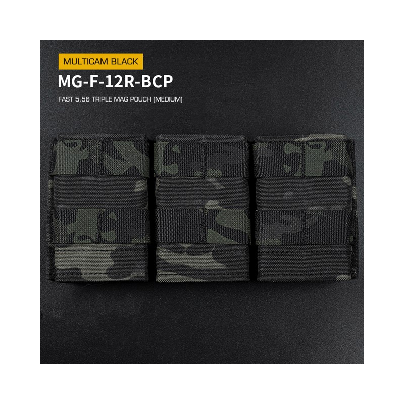 WoSporT FAST MOLLE open-top pouch for 3 rifle magazines 5.56 (M4) in Multicam Black (replica) pattern is an open-top pouch with firm retention without the need for bungee cords. The lightweight construction, plastic inserts and removable MOLLE clips make it an ideal pouch for fast reloads. Designed for 3 rifle magazines 5.56 such as M4, M16, HK416, MK18, TAVOR, SCAR-L (MK16).