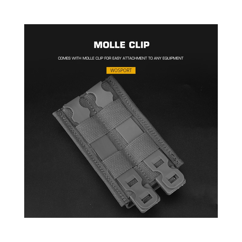 The FAST 5.56 Long model is designed for maximum speed and simplicity during reloads. The open-top design allows immediate access to the magazine without opening any flaps. The internal shaped plastic insert holds the magazine firmly in place even without retention cords, ensuring stability during movement while allowing smooth draw. The durable nylon body with reinforced stitching withstands intensive field or range use. The bottom drain hole removes water and debris to keep the magazine clean. The removable MOLLE clip allows easy attachment to a plate carrier, vest or belt. The pouch is designed for 5.56 rifle magazines such as M4, M16, HK416, MK18, SCAR-L (MK16), TAVOR and other platforms. The long version is ideal for plate carriers and larger MOLLE panels.