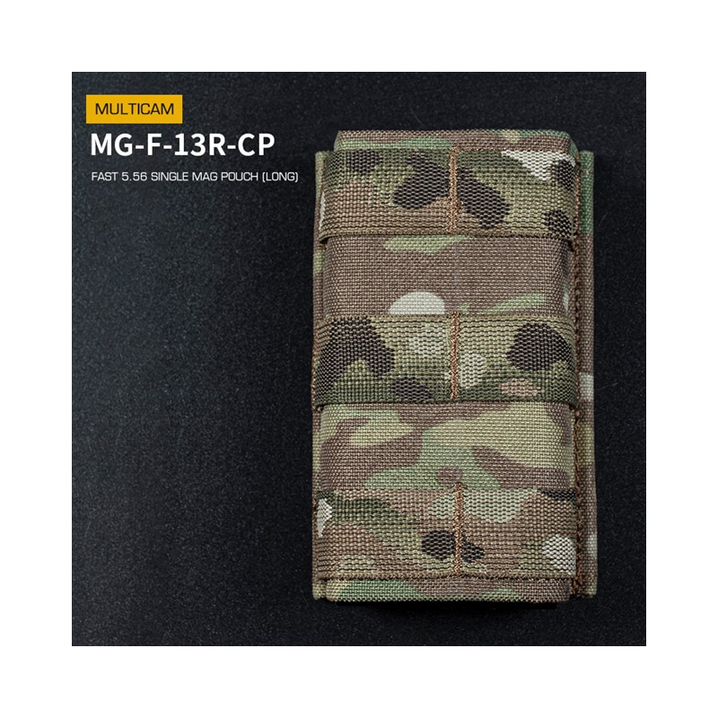 WoSporT FAST MOLLE long pouch for 5.56 rifle magazine (M4) in Multicam (replica) pattern is an open-top pouch with firm retention without the need for a bungee cord. The lightweight construction, plastic insert and removable MOLLE clip make it an ideal pouch for fast reloads. Designed for 5.56 rifle magazines such as M4, M16, HK416, MK18, TAVOR, SCAR-L (MK16) and their airsoft versions.