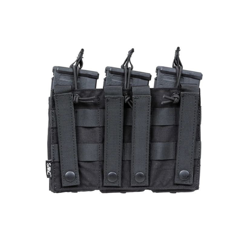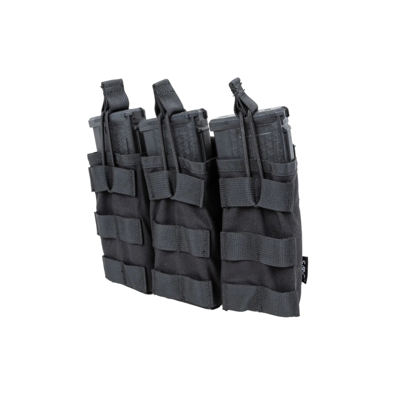 Open MOLLE pouch for 3 M4 / AR15 magazines from SATAC in black.