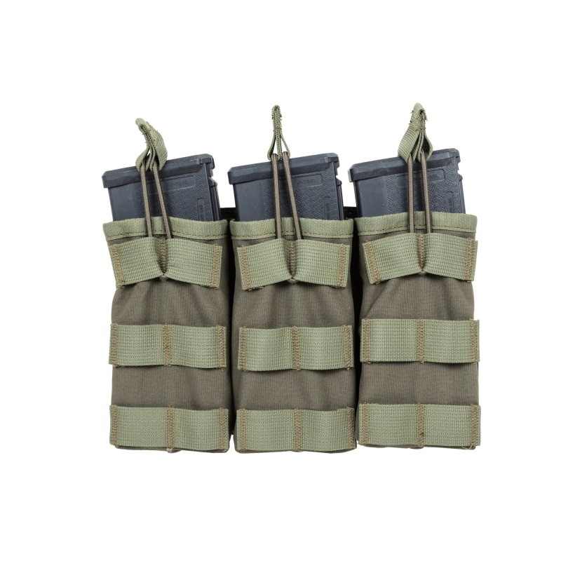 Open MOLLE pouch for 3 M4 / AR15 magazines from SATAC in green.