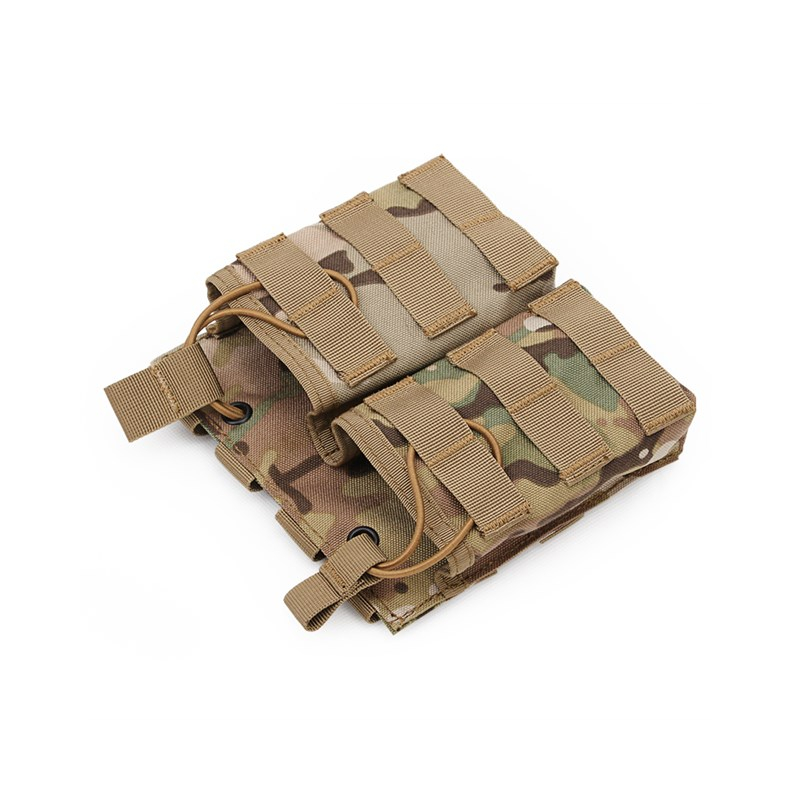 Holster for two G36 magazines, attachable to MOLLE system. The holster is open at the top, the magazine is secured with an elastic adjustable drawstring.