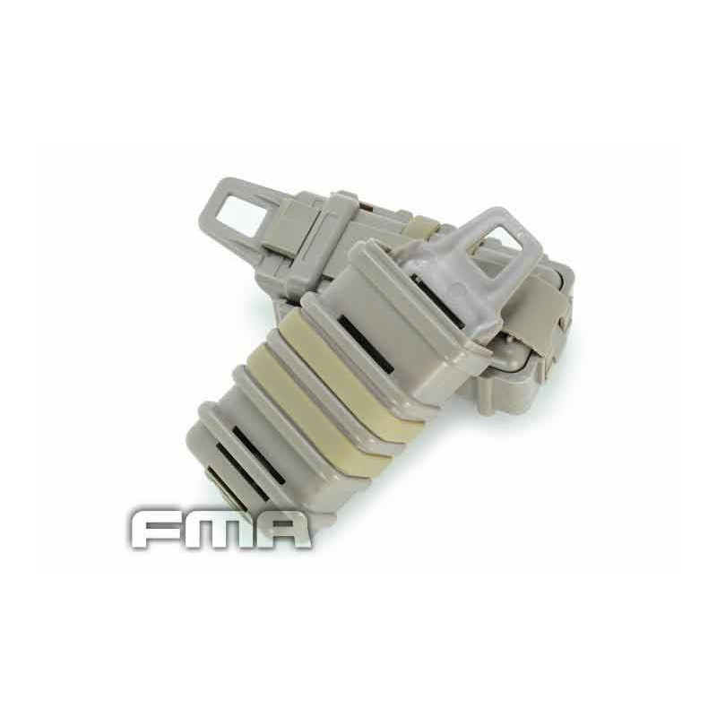 This plastic FastMag pouch from FMA is designed for original H&K MP7A1 magazines and their airsoft GBB variants (Tokyo Marui, VFC, Umarex, KWA, etc.). The magazine is held in the FastMag pouch using plastic compression with two rubber straps around the pouch, allowing for quick insertion and removal without additional retention.