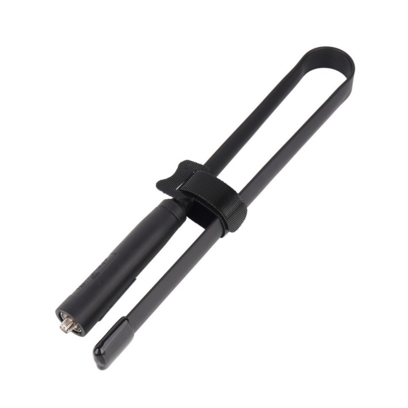 This folding antenna for radios with an SMA connector provides higher performance, stronger signal while maintaining compact dimensions thanks to its ability to fold down to a smaller size. Baofeng offers 3 sizes of folding antennas (47 cm, 72 cm, and 108 cm).