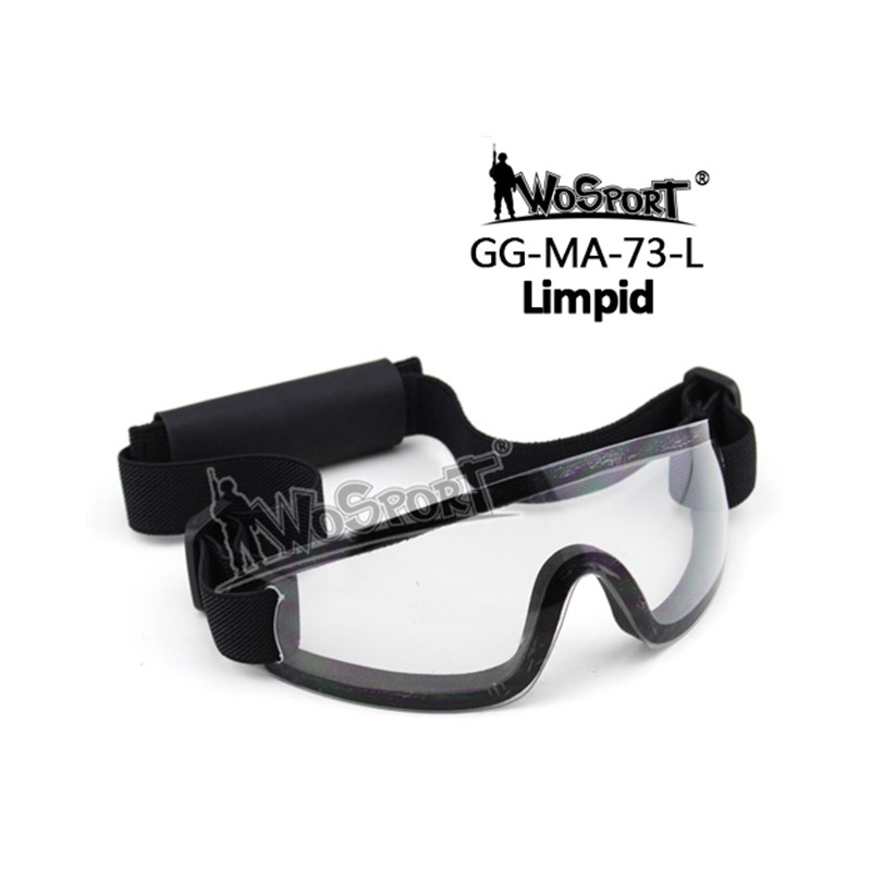WoSporT MA-73 protective shooting goggles with a clear visor and EVA foam provide reliable eye protection for airsoft and shooting range use. The lightweight design, UV protection and durable polycarbonate lens ensure comfort and safety throughout the entire game. They comply with the ANSI Z80.3 standard with lens resistance exceeding 3 J (170 m/s).