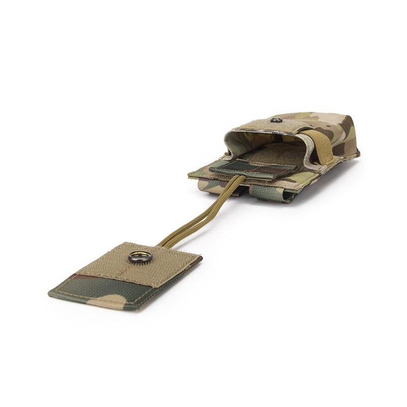Radio bag with Molle binding on the back, featuring waterproof treatment, quality materials and light weight. The walkie-talkie is held in place by an adjustable paracord with Velcro closure. The material of which the pouch is made will not tear easily and has several colour options.