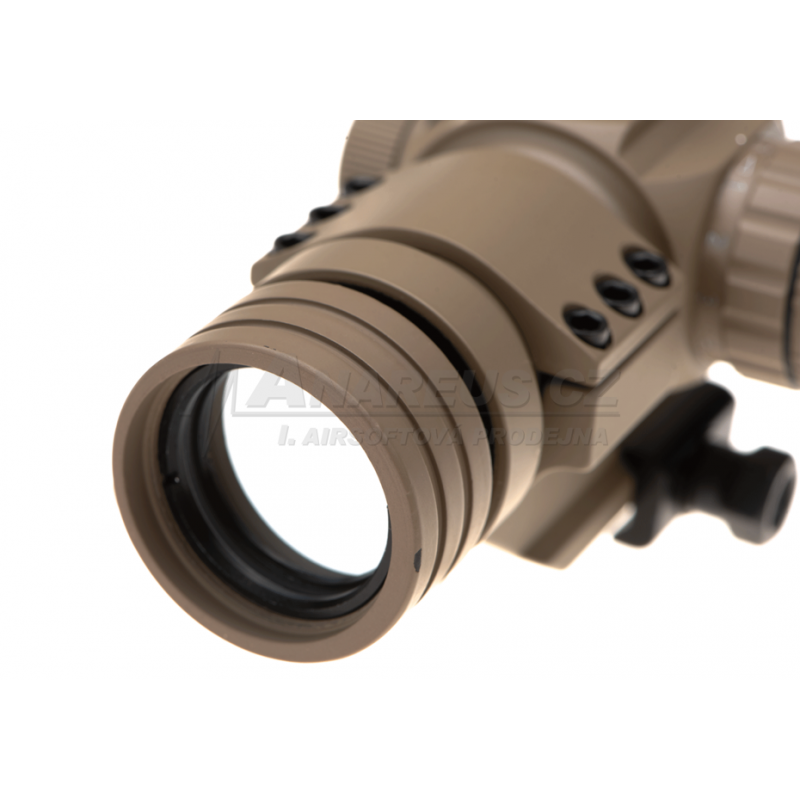 MAVERICK-III 3x22 Magnifier by Vector Optics in Dark Earth finish. 3x magnification for enhanced accuracy at longer distances. Long eye relief of 69 mm. Optical center height of 36 mm from the base. Flip-side mount for quick disengagement. Compatible with Maverick red dots and other Vector Optics sights.