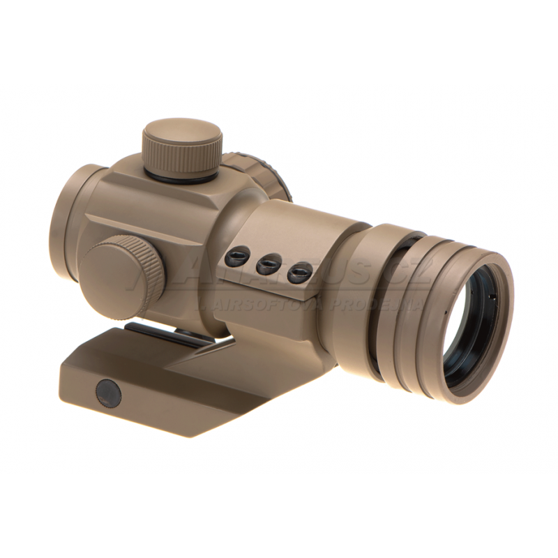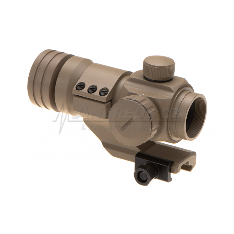 AIM's M3 Red / Green dot sight is a modern classic in the Airsoft world. One of the earliest styles of red dot scopes in Airsoft, the M3 pattern, with the cantilever mount, is a military styled scope with simplistic operation.