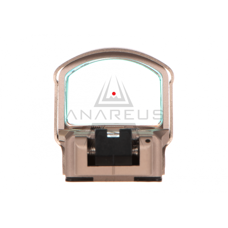 EOT-552 Red Dot Sight by STRIKE SYSTEMS® in tan finish. Powered by 2× AA batteries. Replica of the EOTech 552 sight for airsoft guns. Red or green reticle with adjustable brightness. Full-metal body with RIS rail mount.