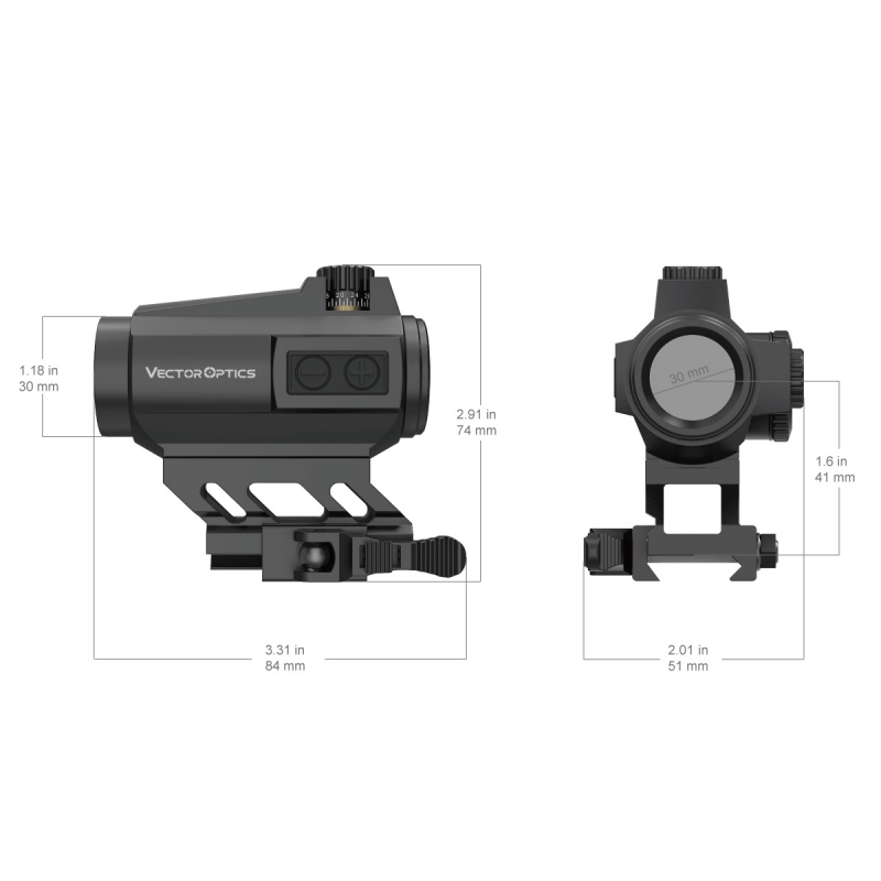 Cantilever high mount provides a Lower 1/3 Co-Witness height of 38 mm, allowing seamless use with iron sights. With parallax under 2 MOA, the dot stays aligned with the target regardless of eye position. The optic features a rugged 6061-T6 aluminum body with a matte finish for long-term durability, and the side-loading battery compartment allows replacement without re-zeroing.