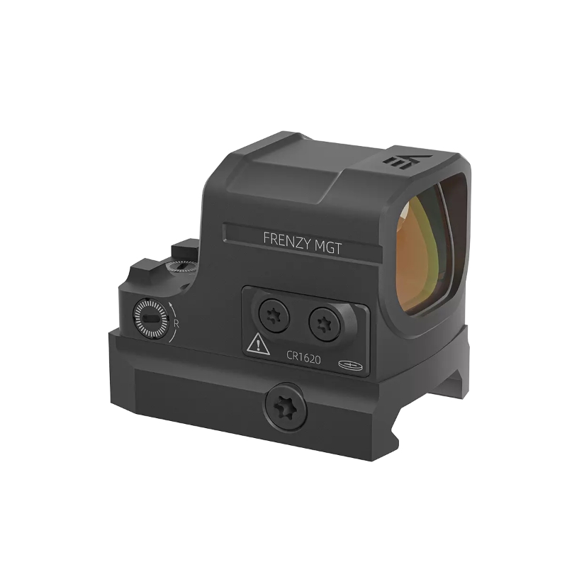Looking for an extremely lightweight red dot sight for everyday concealed carry (EDC) that provides maximum image clarity thanks to an advanced aspheric lens? The FRENZY-S 1×17×20 MRT by Vector Optics weighs only 26 grams yet handles shock up to 1500 G and submersion in water (IP67). Thanks to the multi-reticle system, you can switch between a 3 MOA dot, a 36 MOA circle, or a 46 MOA cross with dot, and choose from 11 brightness levels (including 2 NVG settings), so you can adapt aiming to any situation. The motion sensor ensures automatic on/off functionality, and the side battery replacement allows for quick changes without losing zero. An excellent choice for competitive shooters, professionals, and personal defense. Its biggest advantage is the aspheric lens that minimizes distortion and ensures a crystal-clear view. The red dot can be mounted to a RIS rail using the included RIS mount, or via MGT footprint on other mounts or pistols.