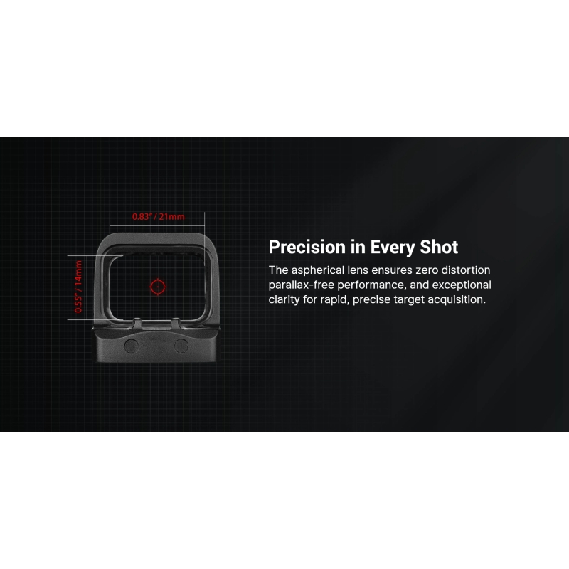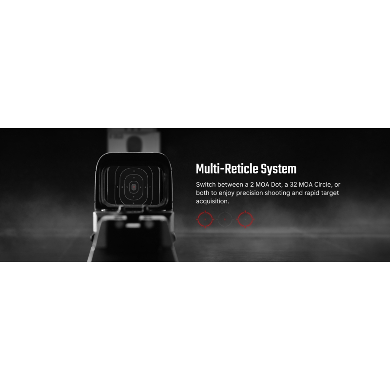 Looking for a reliable RMR red dot sight that can handle everything from concealed carry to tactical operations? Need a fully enclosed design that stands up to rain, dust, and mud? Want a red dot sight with a precision reticle, aspherical lens, and side-loading battery? Then the Osight SE is made for you. The Osight SE offers outstanding durability and clarity. Its enclosed emitter design completely protects the internal optics from dirt and moisture, ensuring reliability in any environment. The aspherical lens delivers a distortion-free, crystal-clear image, while the Multi-Reticle system (2 MOA dot, 32 MOA circle, or both combined) allows you to adjust your aiming point to match your shooting style or distance. With its side-loading CR1620 battery tray, you can replace the battery in seconds without removing or re-zeroing the sight. The built-in motion sensor automatically activates the sight when moved and powers it down after 3 minutes of inactivity, extending runtime up to 75,000 hours. Thanks to its RMSc footprint and low-profile design, it mounts directly to compatible pistol slides and even co-witnesses with factory iron sights. Crafted from 7075-T6 aluminum, the housing is impact-resistant yet weighs only 27.5 g — perfect for duty carry, competition, or everyday use. The Osight SE is a sight that adapts to you — not the other way around.