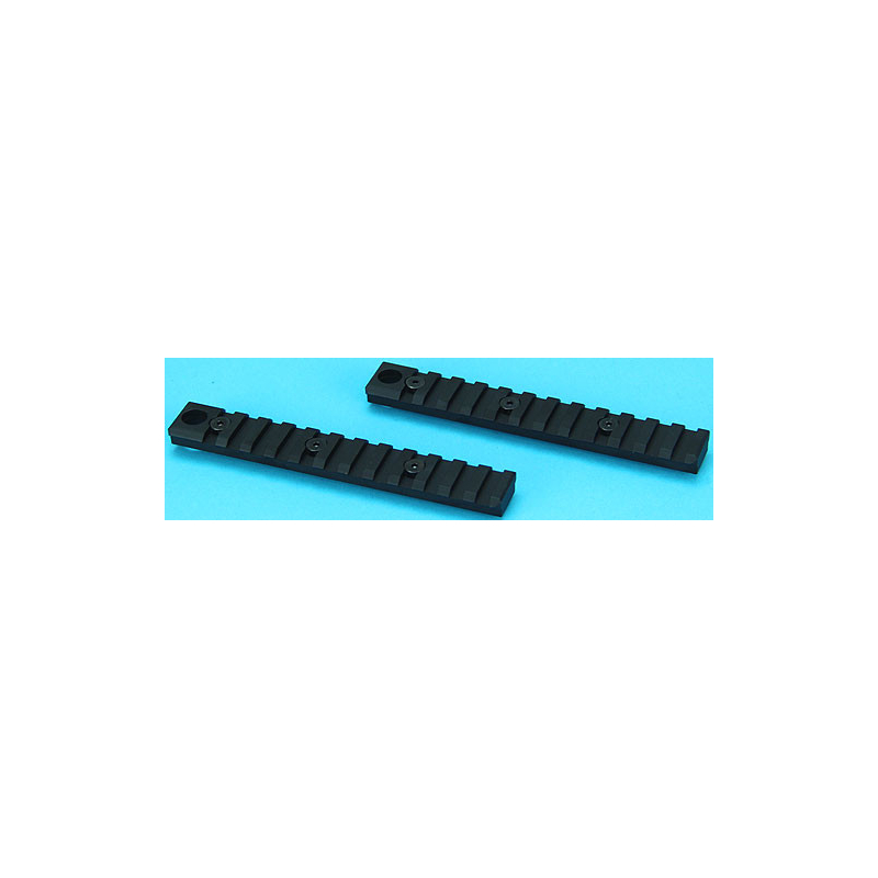 Set of 3 RIS rails for AAC 21 rifles by Action Army in black. 2 rails feature 7 slots, and 1 shorter rail has 3 slots. Compatible with all 21mm RIS / Picatinny accessories. Precision metal construction ensures maximum durability.