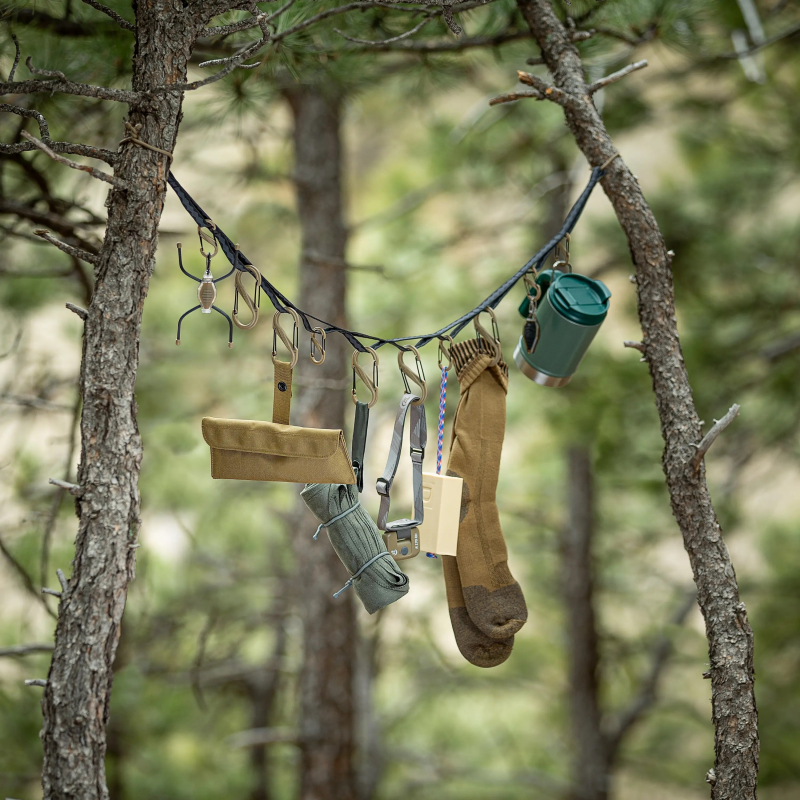 This hang-anywhere, hang-anything GearLine is a 4 ft webbing line equipped with colorful plastic S-Biners attached to multiple bar-tacked loops. An adjustable 12" Gear Tie on each end makes it easy to attach the GearLine almost anywhere - perfect for use at the campsite, around the house, in the garage, and just about anywhere else.