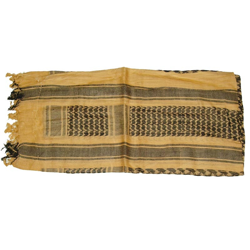 Traditional Palestine / Shemagh Scarf by MIL-TEC in tan and black. Traditional Palestinian scarf (100 % cotton). Dimensions of 110 x 110 cm. Large enough for various wearing styles. Lightweight, breathable, and durable material. Ideal protection against sun, cold, and dust.