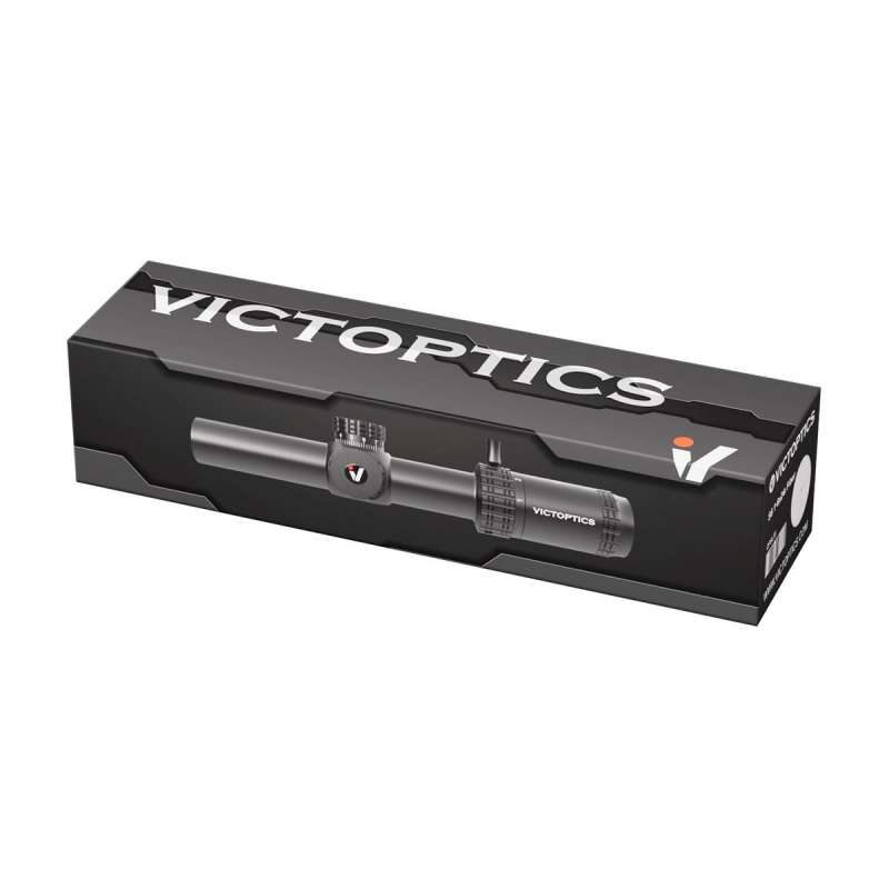 VictOptics LPVO rifle scope S10 1-6×24i Fiber in black finish offers visible daylight illumination and a fiber optic reticle. High-quality fully multi-coated (FMC) lenses ensure a clear and sharp image. Red illumination with 6 brightness levels, a durable construction rated up to 750G recoil, and true 1× magnification make it suitable not only for airsoft but also for real firearms.