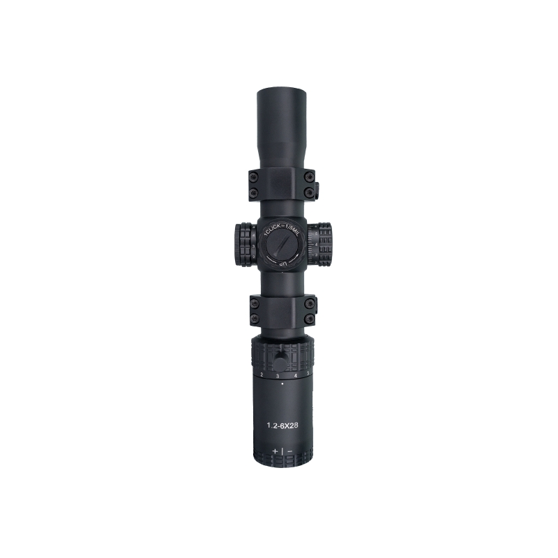 LPVO rifle scope 1–6x28 LMTS-02 with 30 mm mounting rings from STRIKE SYSTEMS® in black finish.