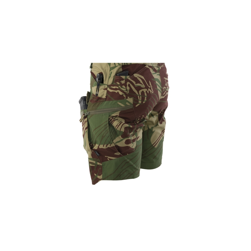 Helikon-Tex Urban Tactical Shorts® (UTS®) 8.5” in Rhodesian Camo pattern offer a modern tactical cut, durable Ripstop fabric, and well-designed pockets for EDC gear and AR15 / M4 magazines. The PolyCotton Stretch Ripstop version is suitable for demanding use at the shooting range, airsoft, or work.