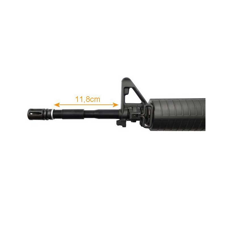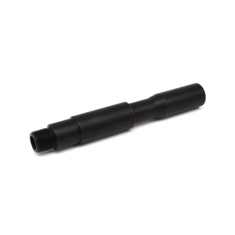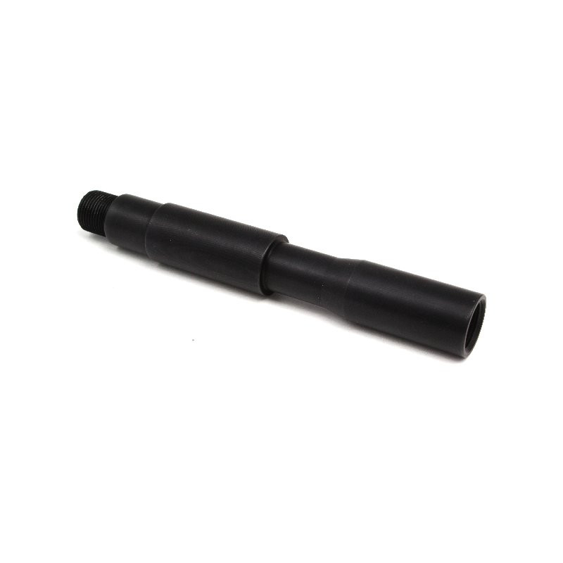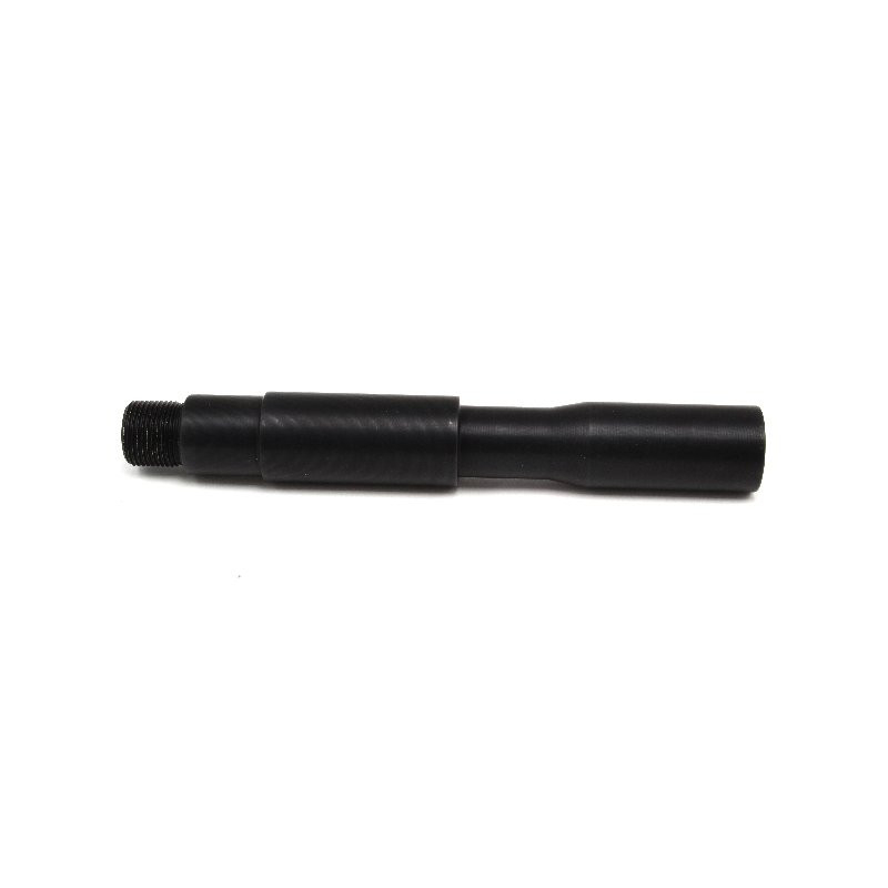 Metal outer barrel for electric guns. Length 13 cm. One end with outer and second end inner thread. Both 14mm counter clockwise. Any compensator, flashhider or silencer fit on this barrel extension. Visually intended for weapons M4, but the barrel can be screwed to most other weapons. For example, G36, AK, P90, MP5, SCAR ... etc.