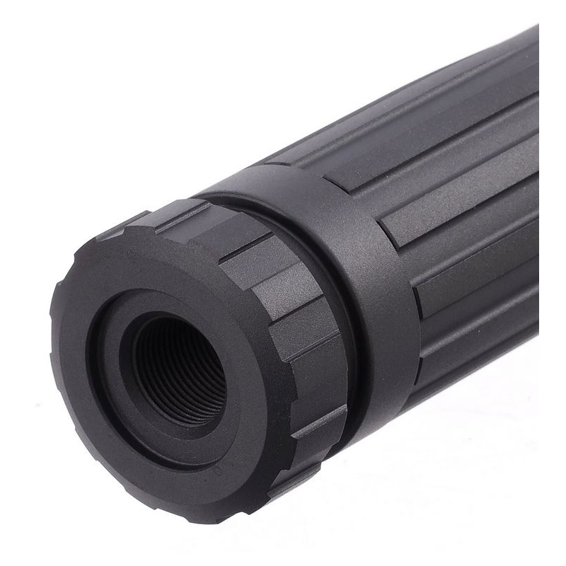 The AAP suppressor from Action Army is a mock suppressor designed for airsoft guns with a 14 mm CCW (left-handed) thread. Its compact dimensions make it a great match for AAP-01 pistols. Made from durable anodized aluminum, it provides both high strength and low weight. The matte finish protects the surface from scratches and adds a sleek, tactical appearance. Its conical body and fluted design set it apart from generic suppressors. Inside is a foam insert that helps slightly reduce noise on gas-powered replicas. While it doesn't act as a true silencer, it's an excellent choice as a visual upgrade or to hide an extended inner barrel.