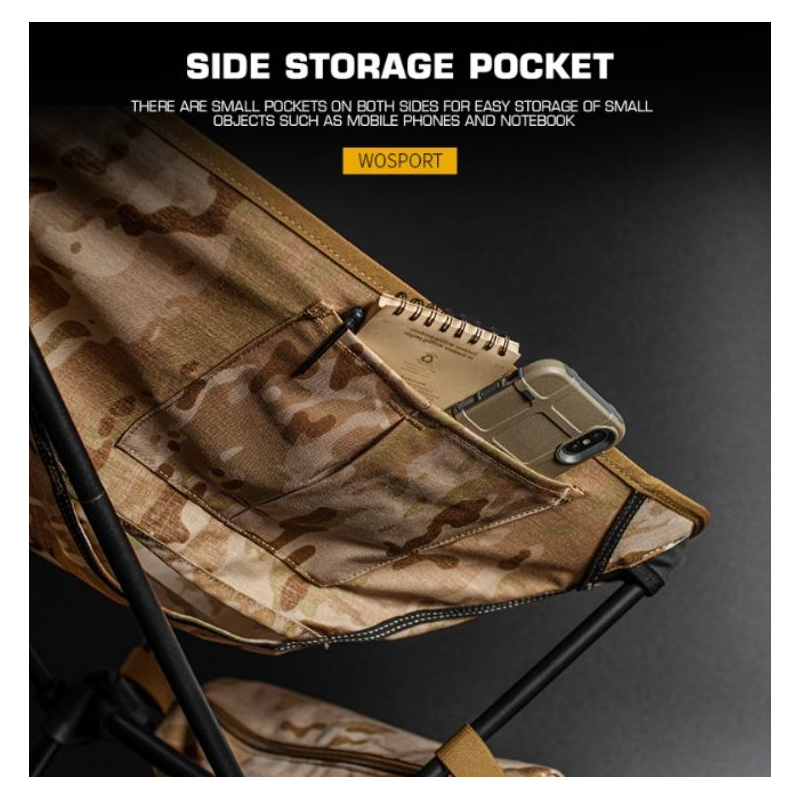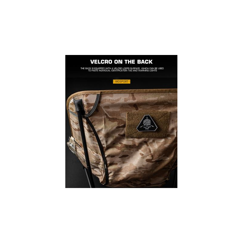 The tactical portable chair from Wosport is a suitable piece of equipment for weekend and longer airsoft events, camping or fishing, etc.