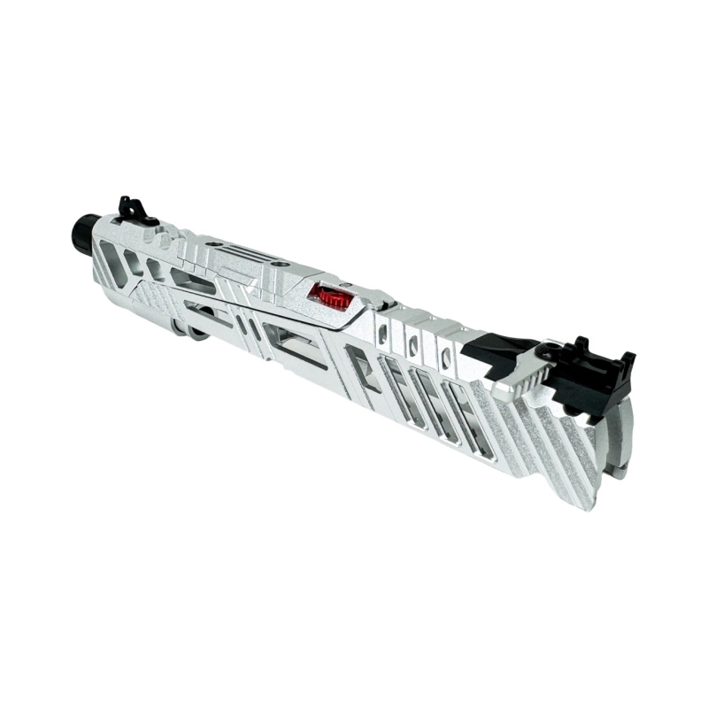 Looking for the best CNC slide upgrade available for your Hi-Capa 5.1 or 4.3 pistol? Want to significantly increase your rate of fire, reduce gas consumption, and achieve maximum accuracy with TDC hop-up? Need a split slide that moves only partially to improve stability, precision, and durability? Then the CTM TAC SUPERLINE Split Slide is the ideal choice. SUPERLINE is an evolution of the original model — lighter, faster, and more precise. Thanks to its Split-Slide design, only the upper section of the slide cycles while the outer barrel remains fixed, greatly increasing accuracy. A key feature is the externally adjustable TDC hop-up wheel, allowing you to fine-tune BB trajectory without removing the slide. The included optic plate supports red dot sights with various footprints. The set also contains a Short Stroke kit and a reinforced 180% nozzle return spring for an even snappier cycling. The slide also features an 11mm CW thread and includes a 14mm CCW adapter, allowing the use of tracer units or compensators. This is simply the best CNC slide upgrade for the Hi-Capa platform, offering premium performance and visual WOW effect. The slide is compatible with Hi-Capa 5.1 and 4.3 frames built according to the TM standard.
