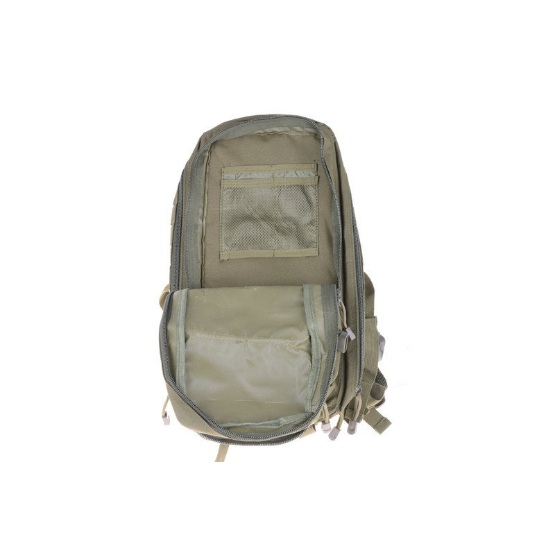 A very comfortable and lightweight Assault Pack type backpack made from a durable nylon. Due to a good placement of pockets and compartments it is very spacious, despite its small size. The MOLLE system allows the user to equip additional pouches in any preferred combination. The backpack will perform well as an EDC backpack – for everyday use, but also during tourist escapades and airsoft activities. The backpack features 2 main compartments and 2 smaller pouches in the front, all with two-way-going zippers. One of the front, smaller compartments features an organizer inside.