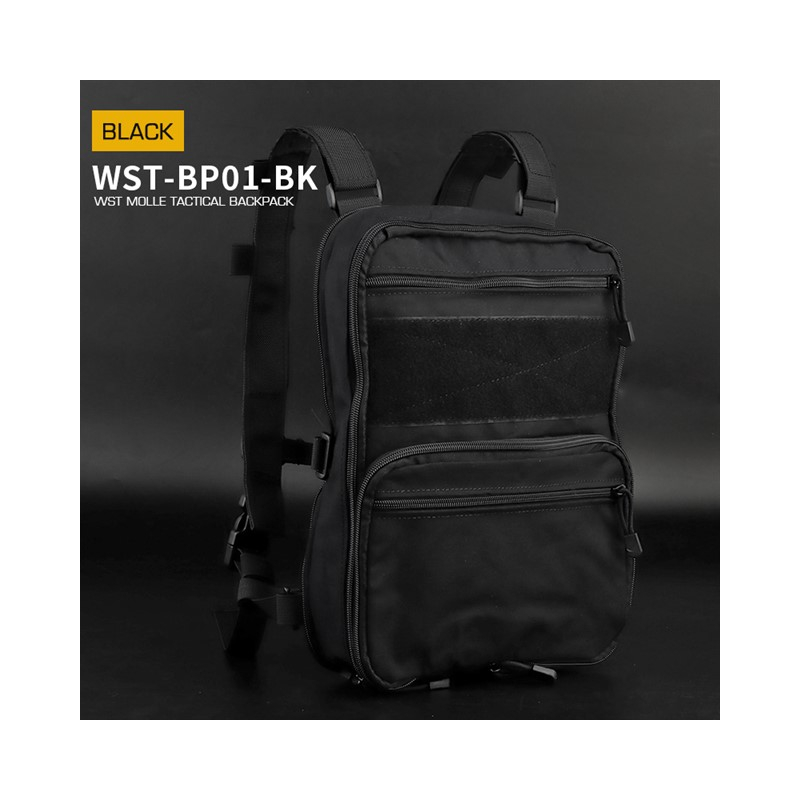 Are you looking for a tactical backpack that is lightweight, compact, and can instantly transform into a full-size pack capable of carrying a full day’s gear? Do you want a backpack that can attach to a MOLLE platform, be used as a standalone pack, or even be integrated with a chest rig? Do you need storage space that remains low-profile but expands to almost 10 liters when the zippers are opened? Then the WoSporT Flat Pack is the perfect choice. Thanks to the expandable gusset system, you can switch from a nearly flat profile to a 9.6 L backpack. The entire interior is lined with VELCRO hook-and-loop for organizing equipment, and it accommodates a hydration bladder along with additional gear. The new chest strap increases stability during movement, and the backpack can be attached to a plate carrier, assault vest or panel via MOLLE webbing. It carries electronics, books, and even a tablet or small laptop (8" × 12"), making it perfect for airsoft as well as everyday urban use.