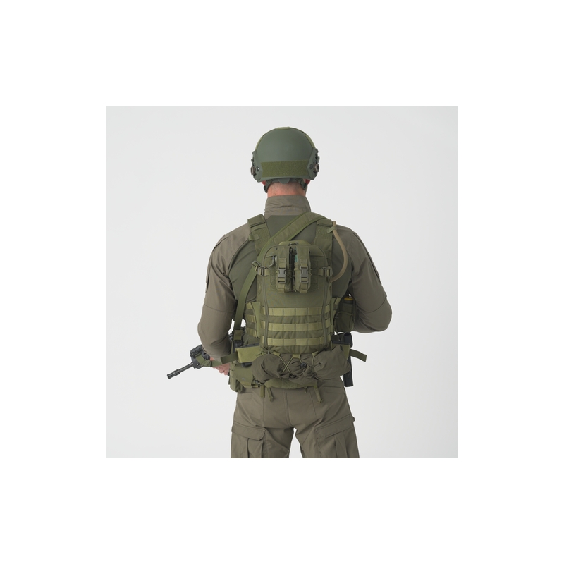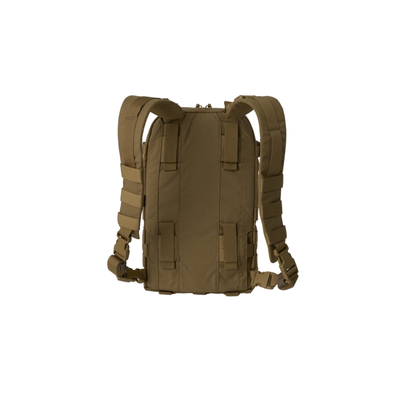 The Guardian Smallpack is a compact backpack with a capacity of 7.5 liters, designed primarily for use with the Guardian Plate Carrier, but it can also be worn independently. The interior is lined with soft fleece-like material (VELCRO hook-and-loop), allowing for the attachment of additional accessories like INSERT pockets as needed.
