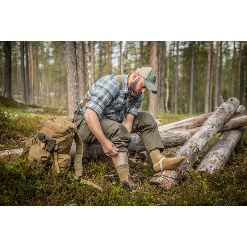 Merino wool is known as an excellent material for outdoor clothing, including socks, which is why Helikon-Tex offers its own Merino socks, providing maximum comfort and breathability. These socks feature seamless construction and an anatomical shape, which prevents blisters during long hikes. They are also equipped with reinforced heel and shin areas for better durability and comfort.