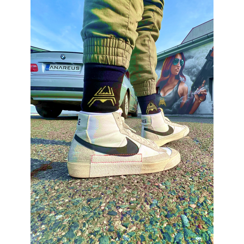 They Have Enchanting Style: Black socks with the yellow Anareus logo are like your secret guides on the adrenaline journey. They're not just practical; they're stylish too. Embrace the challenge and give your feet the right dose of elegance!