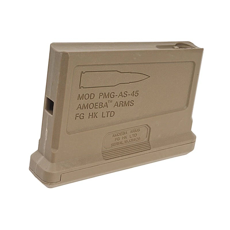 Short magazine for the ARES Amoeba Striker sniper rifle model AS01, AS02, and CQB AS03 with a capacity of 45 rounds and an extra strong spring for heavy ammunition!