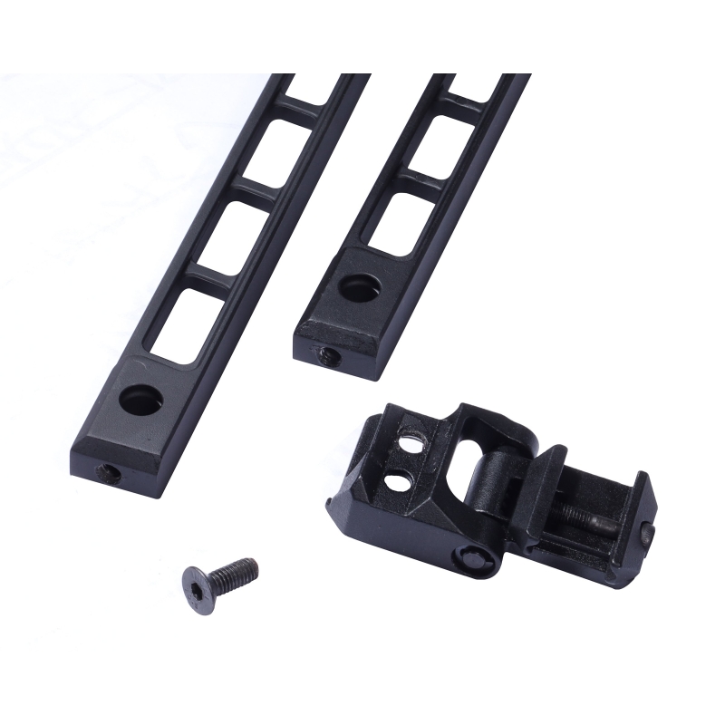 Folding Receiver End Plate with RIS / M1913 Stock Adapter by 5KU in black. Designed for E&L airsoft AK rifles (folding stock versions). Allows installation of stocks with RIS / M1913 interface (MCX, MPX, STRIBOG style). Can also be used without a stock for a compact AK pistol setup. Easy installation. Made from CNC-machined aluminum.
