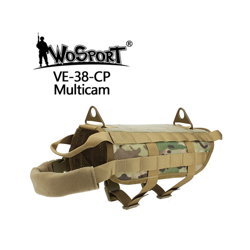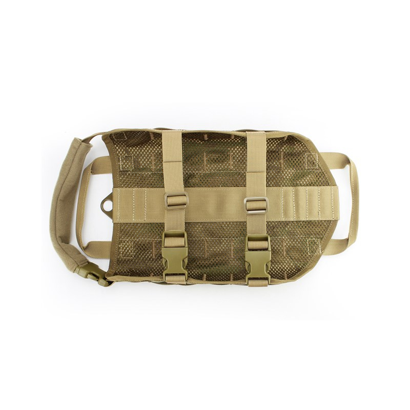 The front strap is equipped with a soft cuff / comfort pad. The vest contains 2 handles for holding the dog and 2 metal latches for attaching the leash. There is a large full-length velcro panel at the top and rows of MOLLE / PALS straps on the sides that can be used to attach additional pouches in any configuration.