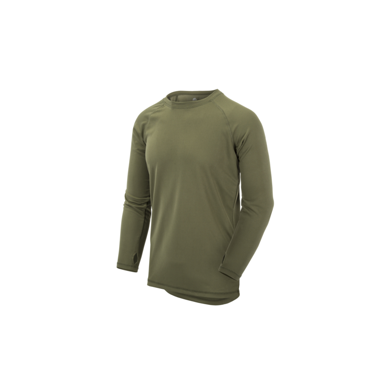 Functional US LEVEL 2 Long-Sleeve Shirt from Helikon-Tex in green. Maximum comfort and performance during any activity. Features excellent moisture-wicking properties and flat seams. Thumb loops prevent the sleeves from riding up. LEVEL 2 is the bottom insulating layer for cooler weather.