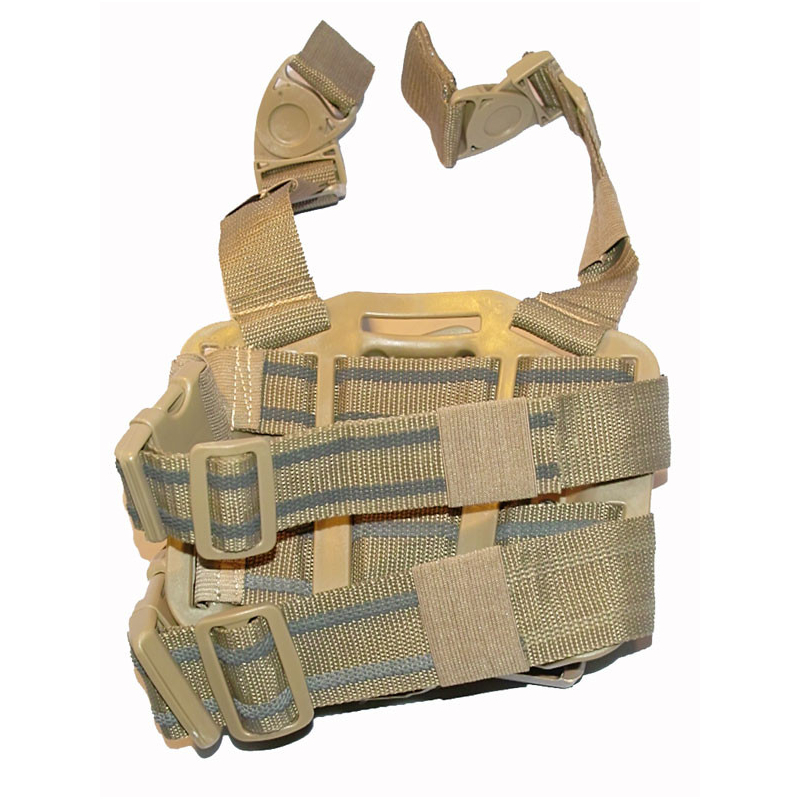 Universal Tactical Drop-Leg / Thigh Pistol Holster TORNADO by MIL-FORCE in Coyote Brown. Right-handed version. Adjustable wrap-around design for medium and large pistols such as MK 23 SOCOM (SSX23) or DE .50 AE. Compatible with pistols equipped with a flashlight. Thigh strap with non-slip surface and buckle. Magazine pouch directly on the holster.