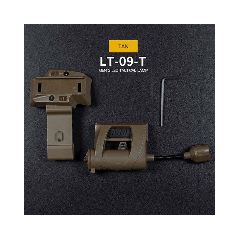 Practical helmet lamp, thanks to which you will never get lost in the dark again. At the same time you will have both hands free. You can attach the flashlight to the helmet rail or attach it to the velcro panel.